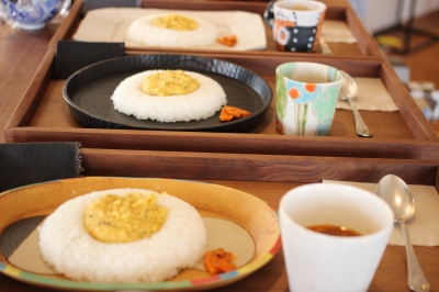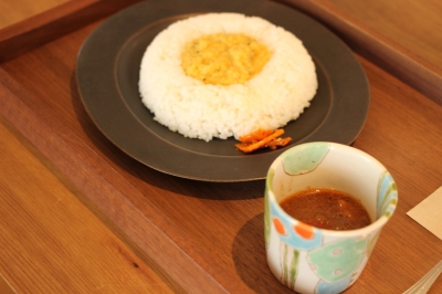 現在、カレーランチで真美さんのカップでポークカレーをお出ししています。