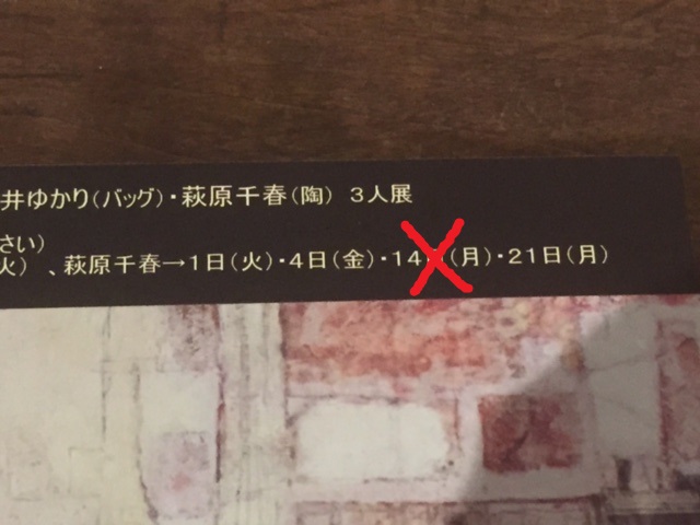 ◎千春さんの在廊日で14日(月)の記述がありますが、14日は不在です。