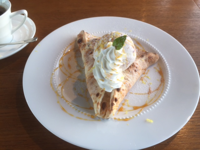 お茶だけのつもりだったが、結構ヘビーなドルチェピッツァを注文してしまった。(苦笑)