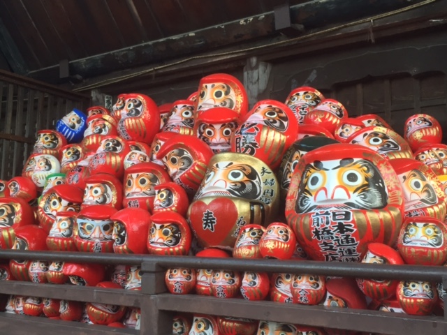 ブロンズの達磨大師の前でお坊さんがお経をあげてくださり、