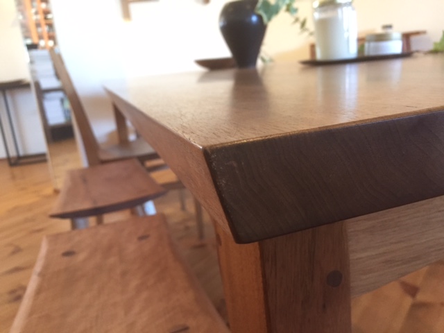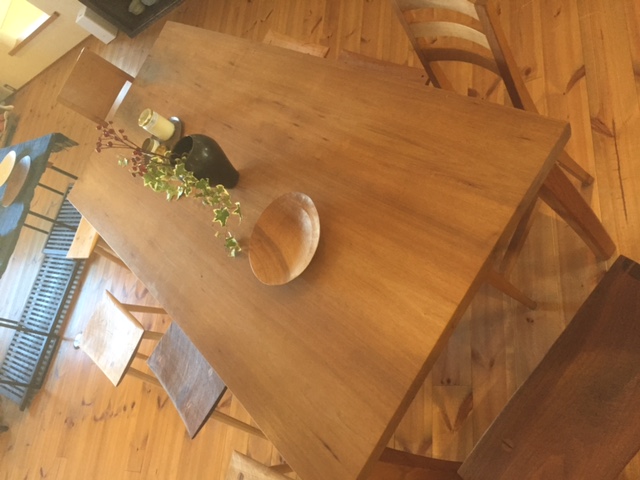 3年前、私の友人が自宅のダイニングテーブルやスツール、ベンチを杉村さんにオーダーしました。