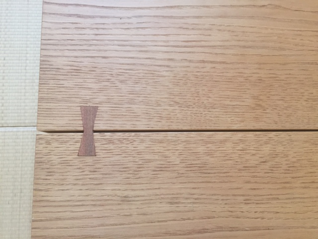 接ぎは少し隙間をあけてリボン型のチギリがアクセントに。