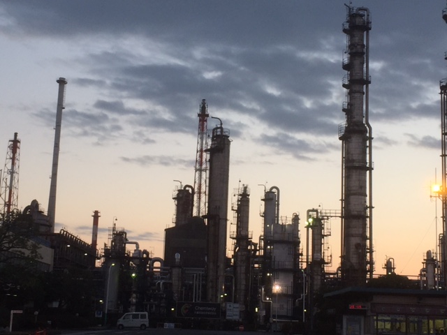工場に灯りが点き始め、こちらも綺麗!