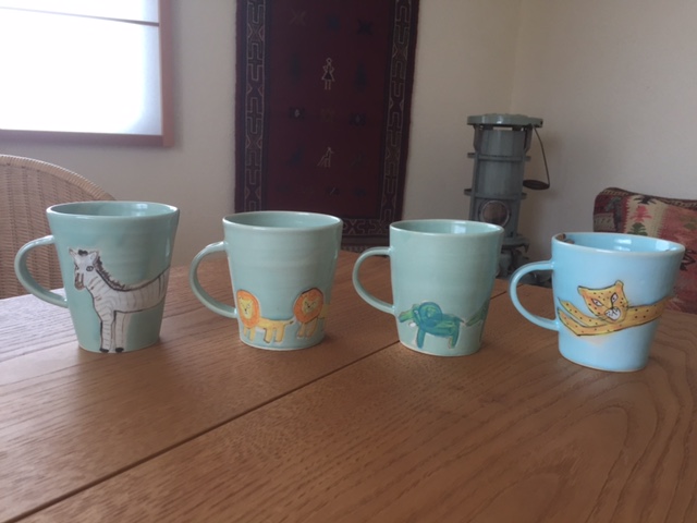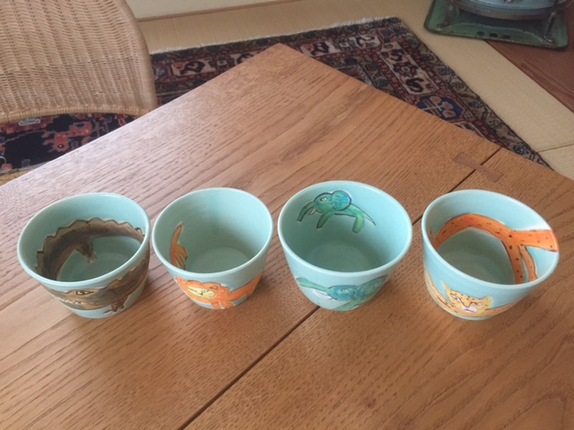 今日はキダサトコさんの動物の絵付けのカップをご紹介します。
