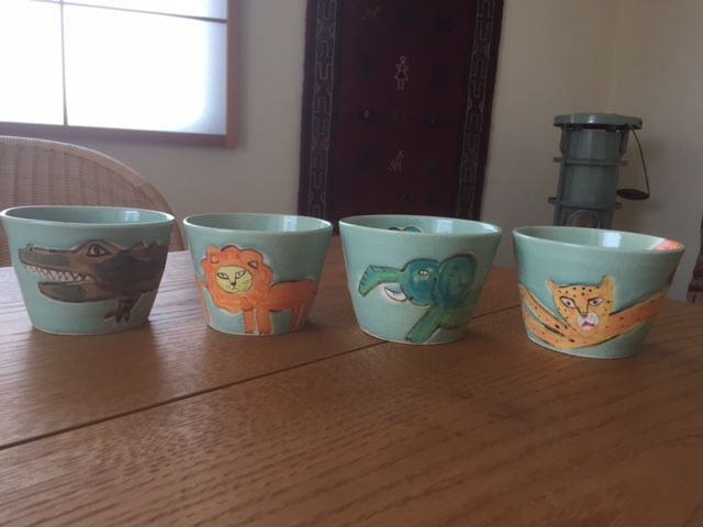 幼い子供がのびのびと描いたような動物の絵付けが楽しすぎる陶の器。