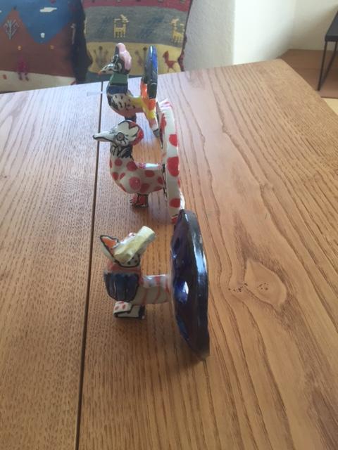 幼い子供がのびのびと描いたような動物の絵付けが楽しすぎる陶の器。