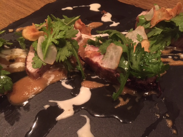 鰤のロースト 生姜のビネグレットと白いんげんのピューレ 焦がしバターのソース