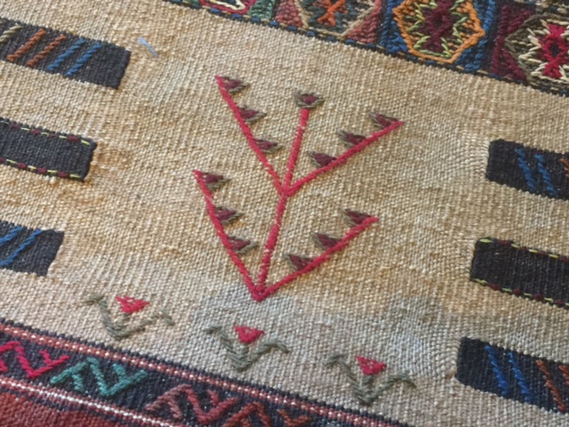 グーチャンのキリムは胡桃の皮などで染めたシンプルな平織り地に