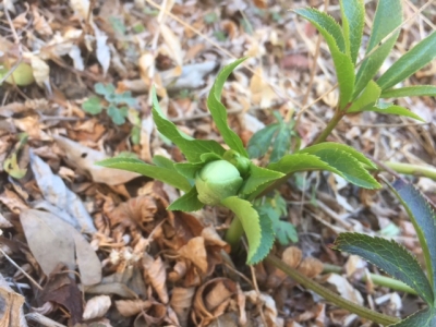 庭のクリスマスローズの小さい蕾を見つけました。