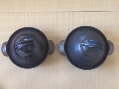 手前のは内蓋のついた炊飯鍋で、3合くらいが炊けるサイズ。