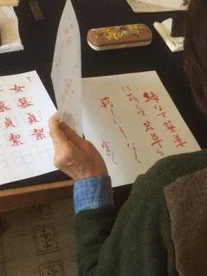 ただいま、みなさん、熱心に書に取り組んでおられます。