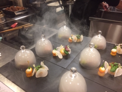 ガラスのドームの中に充満させると、簡易燻製ができるのです。