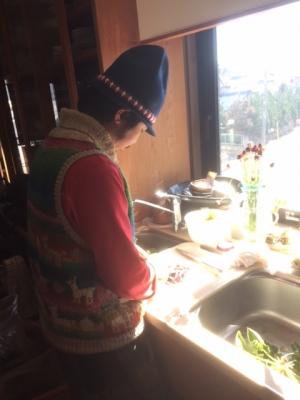 サラダは紅菜苔とフルーツカブを中心にした冬野菜で作ります。