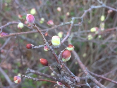 庭のヒュウガミズキの蕾が膨らんできました。