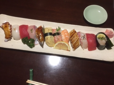 母と近所の寿司屋さんに行って晩ごはん。