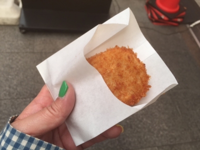 この日は行儀悪くも立ち食い食べ歩きの予定。