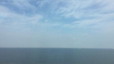 羽田からのリムジンバスの中から見えた東京湾の水平線。