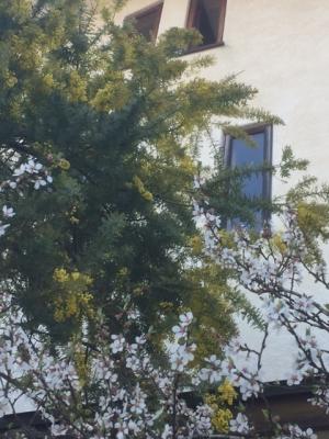 ウチのミモザがようやく7分咲きくらいになりました。