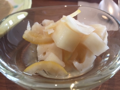 付け合わせは『白い野菜のハニーレモンピクルス』