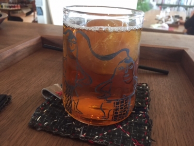 透明のドリンクをいれると、向こう側の面の絵が膨らんで見えておもしろい。