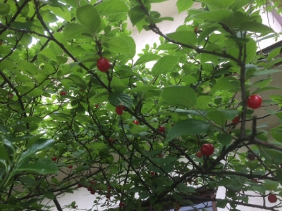 ユスラウメの赤い実がたくさん成ってきました。