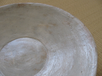 内側は少し艶があるがマダラな粉引の感じがよい。