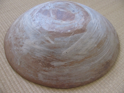外側はマットで、土の地色と白化粧の粗いタッチがよい。