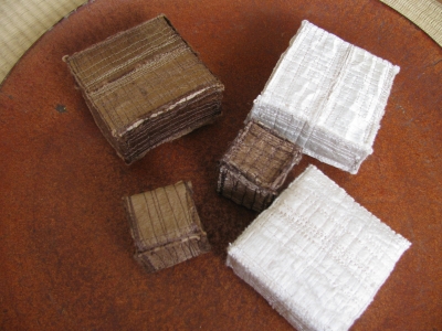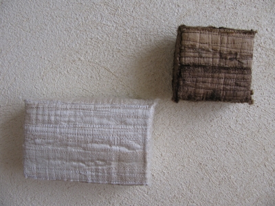 質感のあるシルクで織った布をなんどもステッチをかけ、