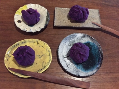 昨日いらしたTさんお手製の紫イモのきんとんをいただきました。