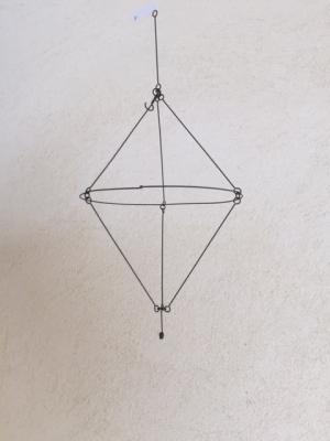 線が重なって面になり、それが繊細な線で吊るされています。