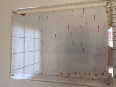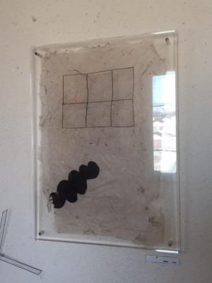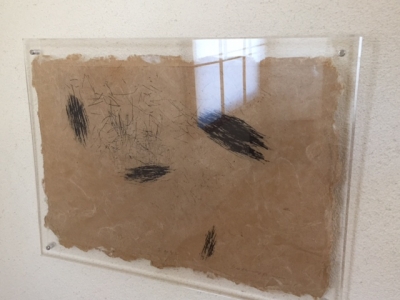 先日もご紹介しましたが、今日は和紙に銅版画を施したシートをアクリル板で装した作品。