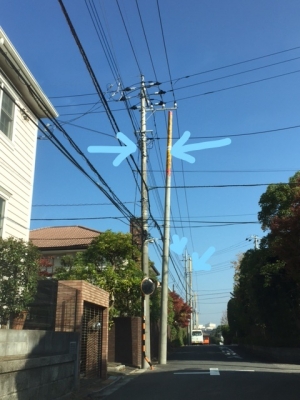 付け替える時に、暫定的に電線をその横の斜め電柱に取り付け、