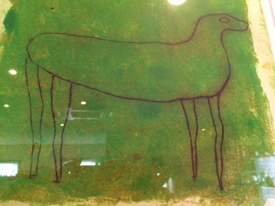 筆で描くのではなく、素地に先の尖ったニードルで溝を彫り、