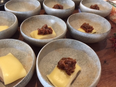 まずは、高木さんの長方皿、丸皿に盛り付けてみる。