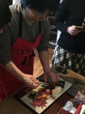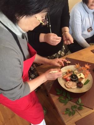 林さんが、テーブルを回って、盛り付けのアドバイスを。