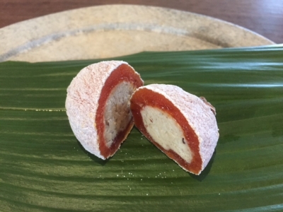 干し柿の中に栗きんとんが入っています。