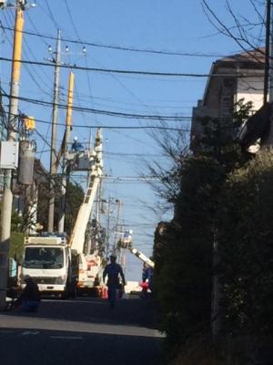 今朝出勤しようと家を出たら、電柱替えの本工事中。