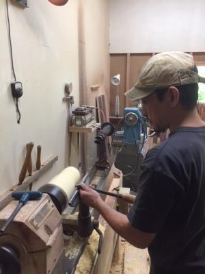 旋盤で削るところを見せてもらいました。
