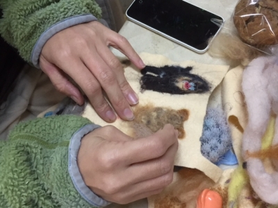 羊毛をニードルでツンツン突っついてカタチにしていくのがおもしろい。