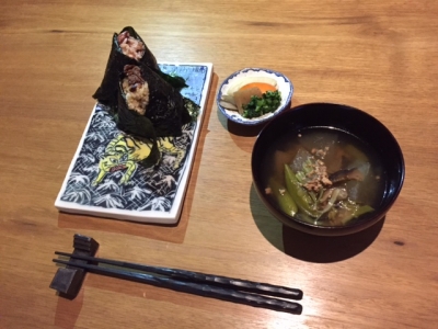 お好みのおむすび、漬物、吸物のセットで、おむすび代金+300yen