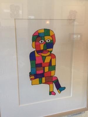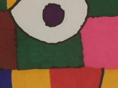 升目をカラフルなマーカーで塗りつぶされた絵。