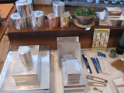 真鍮、銅、ブリキのいろいろなカタチの缶。