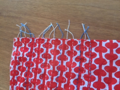 ステッチの両端を手ぬぐいの幅よりも少し出してフリンジに。