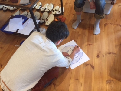 足のサイズや形状を綿密に測り、木型は作らないまでも
