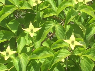 庭のヤマボウシの花がジャンジャン咲いてきました。