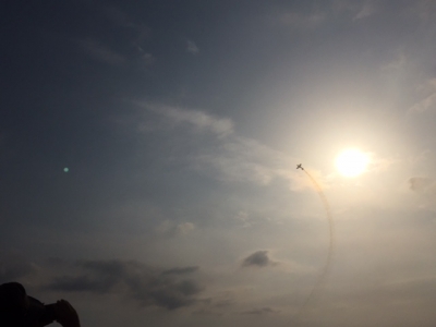 爆音を立ててスモークのラインを引きながら全速力で飛ぶ。