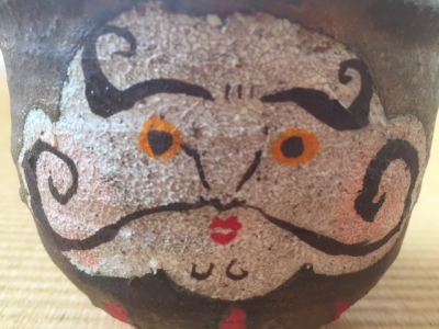 頭がパカっと空いていて、ここに花を生けたりお酒を入れたり・・・。