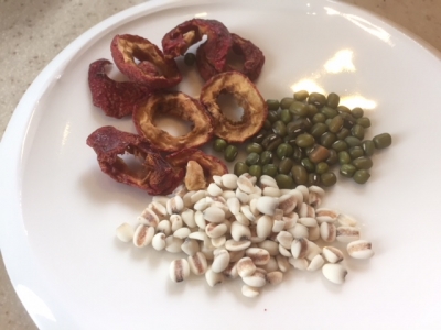 ・緑豆(ムングダル):暑熱を取り、体内の毒を排出。尿を出しむくみを取る。