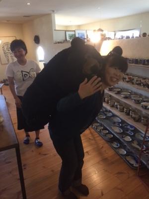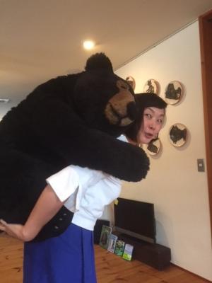 先日在廊の光さん、自分のカラダとほぼ同じクマを背負うのに奮闘中。(汗)