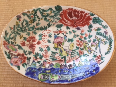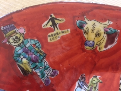 よく見ると、九谷カラーを踏襲しながらも、なんともユニークでウィットにとんだ上絵が魅力。